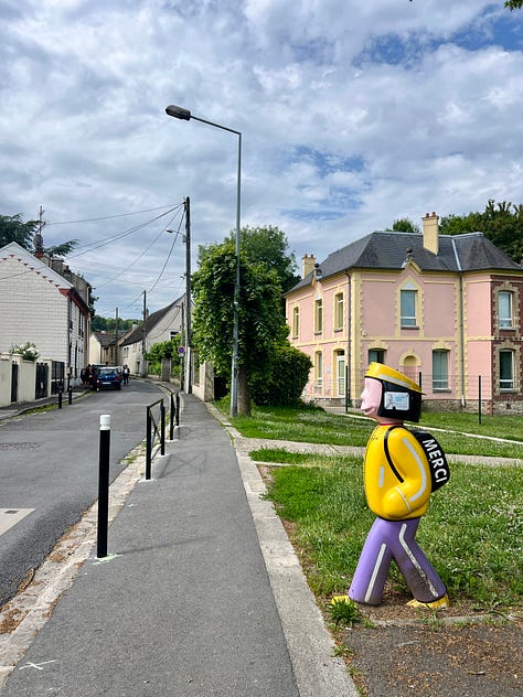 Ik laat al het landelijke achter me en daal ik af richting de periferie van Parijs. Er is een skyline, maar het is nog niet de hoofdstad zelf. Het zijn de contouren van de voorstad Saint-Denis. Alles is nu bebouwde kom; het gaat van dorp naar voorstad naar stad.