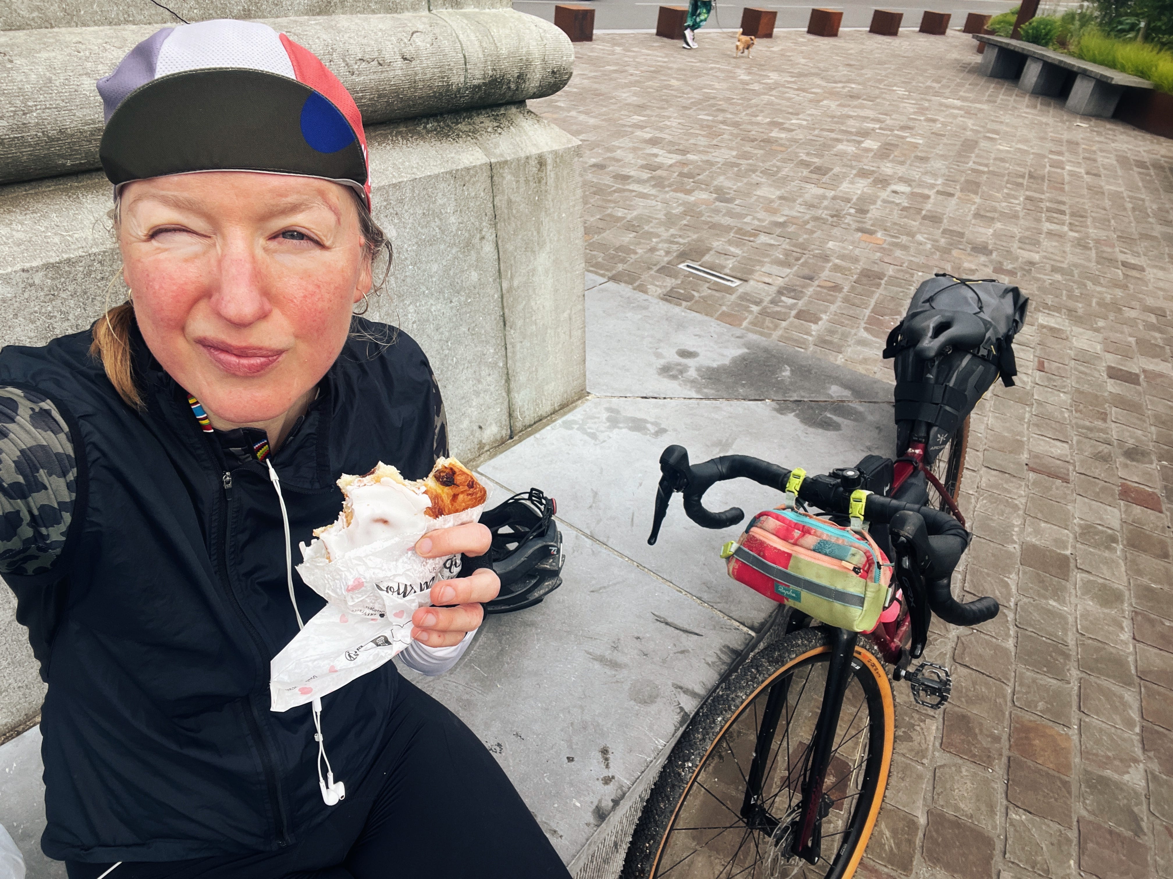 Eten & drinken: minstens twee bidons, genoeg sportdrank tabs, repen, gels en koeken (ik ben fan van vlugge Japies). En niet te vergeten Haribo of ander zoet snoep. Onderweg bezoek je bakkers en cafés. Het is trouwens ook maar wat je lekker vindt. Op de hele warme derde dag kreeg ik de eiwitreep met pindakaas niet weg en had vooral fantasieën over calippo’s en ijskoude cola.